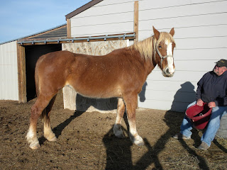 Here at the ranch we have adopted a former PMU (Pregnant Mare Urine) mare. These mares are used for their urine to make synthetic hormone replacement, and these mares are treated very poorly--kept in a pen all of their lives, catheterized and in a constant state of pregnancy.